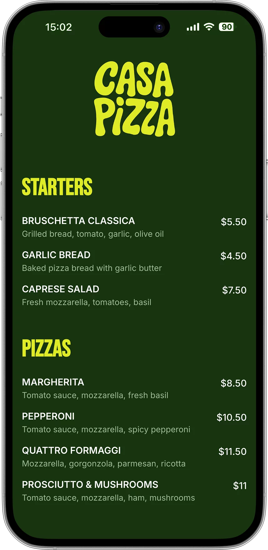 Choose colors, fonts, and layout to match your restaurant’s brand.
